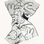Das Miffy-Plaid ist aus 100 % neuseeländischer Wolle Jacquard gewebt und hat Fransen an den kurzen Seiten. Eine dicke Wolldecke mit umgekehrtem Aufdruck auf der Rückseite. Mit einer Größe von 130 x 200 cm ist es groß genug, dass zwei Personen darunter tau