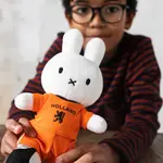 Go Holland Go! Miffy would love a position on the national team. Your dress-up Miffy is handcrafted. You can wash her, but we don't recommend using a machine. Hand wash only. Miffy's filling is made of 100% recycled polyester and our suppliers are carefully selected and all meet the “ethical supply chain” (ICTI) status.