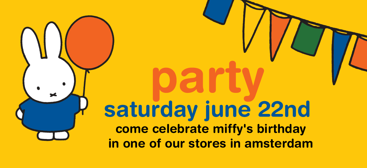 MEET & GREET - Miffy's birthday is almost here and she's turning 69 years old! Of course we'll be celebrating this in the Miffy store(s) in Amsterdam. Will you also come to Miffy's party on Saturday 22nd of June? You can meet Miffy in her party dress, have your picture taken together and there will be all sorts of sweets.