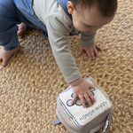 Your child will not get bored easily with this fun Miffy activity cube. There is something different to discover on each side of the cube, such as fun images, different fabrics, labels to feel, a mirror and a silicone Miffy ring. There is also a bell inside the cube for a nice rattle effect. Age: from birth.