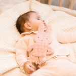 Read moreA wonderfully soft pacifier cloth for the little ones. This pacifier cloth is wonderful to cuddle with and contains a label that children can fiddle with. The soft fabric has a unique design, in which punched flowers are incorporated. You attach the pacifier to the cotton cord and it is always within reach. It is very nice as a maternity gift!